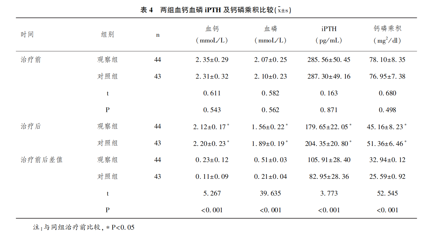 HD聯合HP有助于維持MHD患者鈣磷代謝平衡,降低iPTH、鈣磷乘積,從而減輕腎損傷,降低血管軟組織鈣化風險。