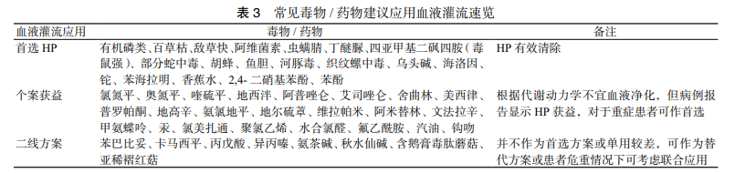 研究顯示,在臨床實(shí)踐中,多數(shù)毒物/藥物并不全部滿足上述特征,但仍以血液灌流作為首選血液凈化方式。常見毒物/藥物建議應(yīng)用血液灌流速覽見表3。